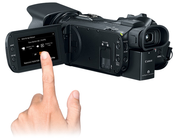 La videocámara VIXIA HF G50 cuenta con una pantalla LCD capacitiva de panel táctil y de 3.0 pulgadas que es brillante y claramente visible, y garantiza una reproducción del color viva y natural dondequiera que vaya. Su interfaz de usuario automatizada le permite seleccionar puntos focales, seguir objetos en movimiento, y capturar y ver videos de forma fácil y divertida. Aparecen explicaciones claras al seleccionar los modos de toma y los formatos de grabación, para que los videógrafos puedan sentir la confianza necesaria para crear videos impresionantes.